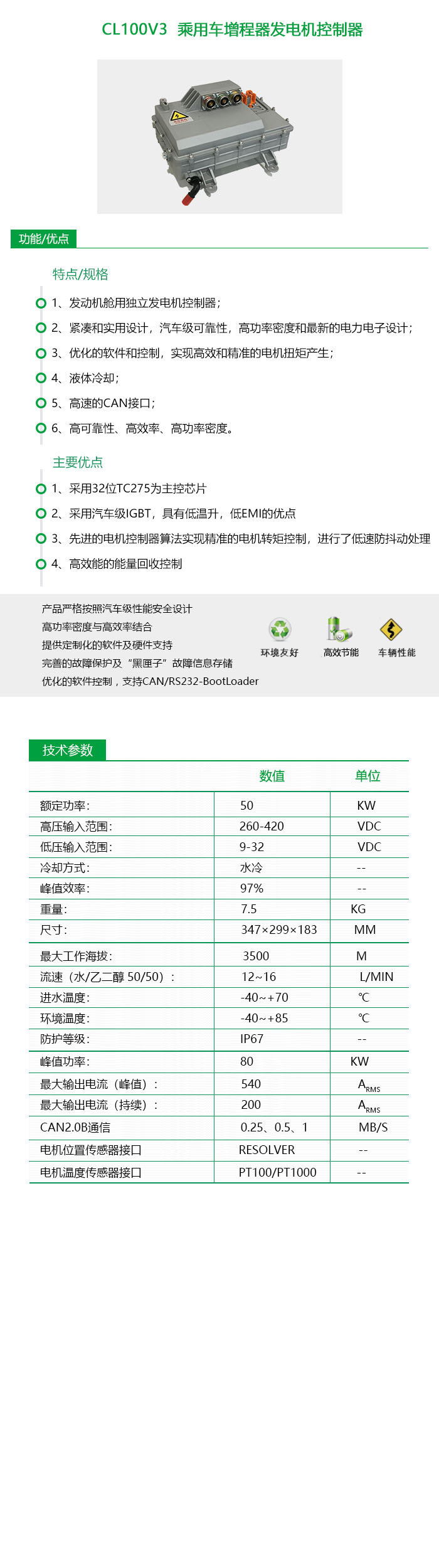 CL100V3 乘用車增程器發(fā)電機控制器