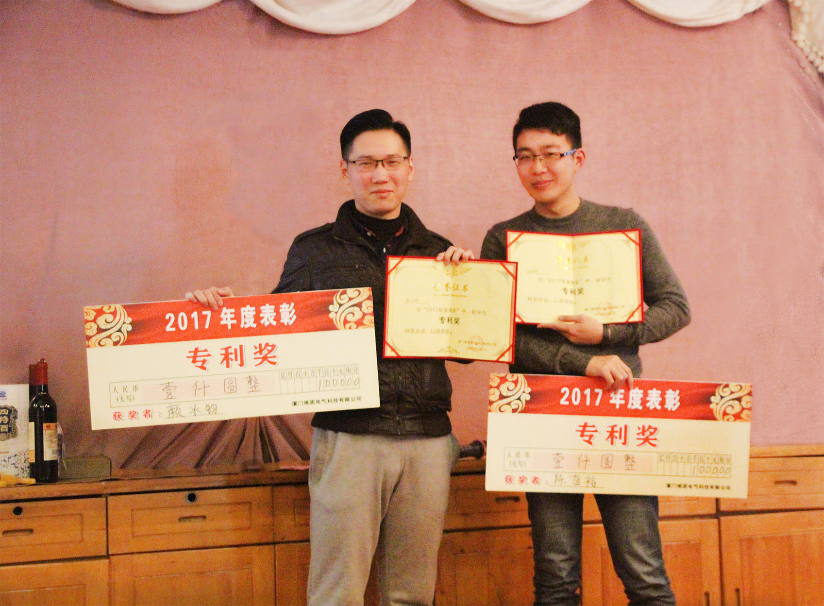 大會在公司領(lǐng)導(dǎo)精彩而真情的新年獻(xiàn)詞中拉開了帷幕,對2017年廈門唯質(zhì)電氣科技有限公司的發(fā)展作了全面客觀、公正的總結(jié),并提出了2018年公司未來的發(fā)展思路。最激動人心的時刻莫過于2017年度先進(jìn)集體、先進(jìn)個人表彰與嘉獎的頒布。2017年唯質(zhì)電氣兩項(xiàng)專利申請獲批,先進(jìn)集體、先進(jìn)個人若干。